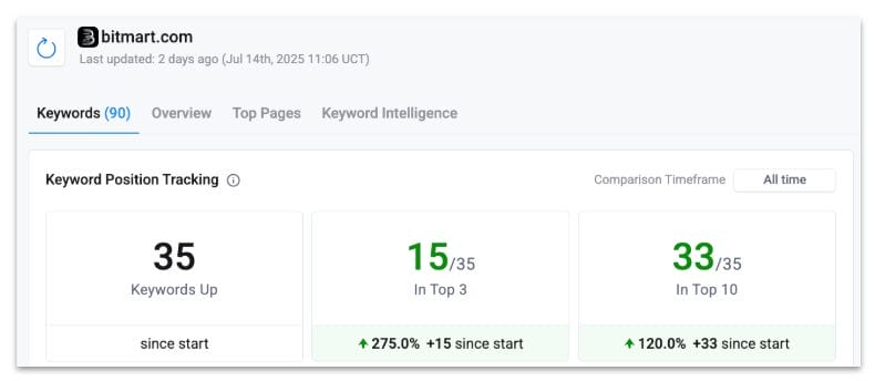 透過執行高聚焦、強爆發力的SEO攻堅戰役,BitMart達成下列關鍵戰果: